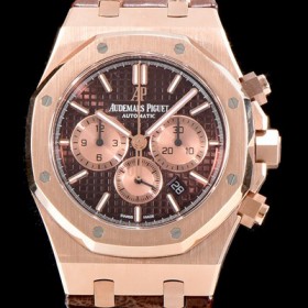 홍콩명품 [오데마피게] 남성용 "New 41mm사이즈 가죽밴드 UP!!"로얄오크 26331OR.OO.D821CR.01 크로노그래프 고급스러운 18K 로즈골드 케이스 브라운 와플 다이얼 신형 ETA 7750B-2 오토매틱 무브먼트 AUD0154