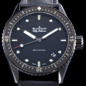 홍콩명품 [블랑팡] 남성용 VIP타입 최고의 퀄리티 피프티 패덤스 5000-0130-B52 A ZF 바티스카프 리얼 세라믹 베젤 UP!! 칼리버1315 다이버 워치 블랙 다이얼 오토매틱 무브먼트 BLA4232