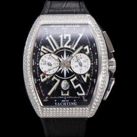 홍콩명품 [프랭크뮬러] 남성용 뱅가드 다이아셋팅 오토매틱 크로노그래프 7750 타입 44mm 가죽줄 블랙 다이얼 fra8244