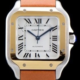 홍콩명품 [까르띠에] 남성용 산토스 드 까르띠 W2SA0007 "18K 옐로우골드 베젤" 미듐 모델 정품 동일 사이즈 실버 마감 오팔린 다이얼 오토매틱 무브먼트 CAR4010