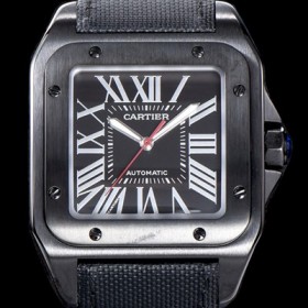 Cartier Santos 100 Men's Best UP! Large Carbon Watch All Black ADLC Coating Black Dial Japanese 9015 Automatic Movement