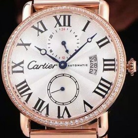 홍콩명품 [까르띠에] 남성용 롱드더 까르띠에 서브 세컨즈 18k 로즈골드 쥬얼 다이아몬드 베젤 물결무늬 화이트 다이얼 블랙 로마 인덱스 스위스 ETA 2824-A2오토매틱 무브먼 CAR0301