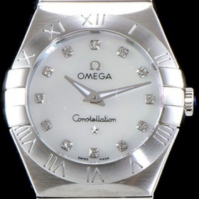 홍콩명품 [오메가] 여성 컬렉션 컨스틀레이션 123.10.24.60.55.001 오메가 코-액시얼 27MM 로마 숫자가 인그레이빙된 베젤 화이트 자개 다이얼 쿼츠 무브먼트 OMG0122