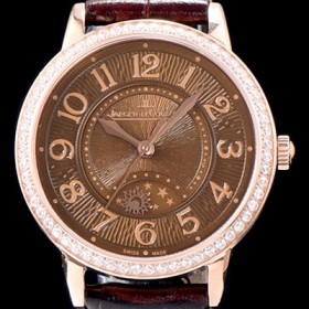 홍콩명품 [예거르꿀르뜨] 남성용 랑데부 나잇&데이 344242J 레이디 워치 18K 로즈골드 최상급 다이아몬드 세팅 베젤 문페이즈 브라운 텍스쳐드 다이얼 오토매틱 무브먼트 JAG0420 > 예거르꿀뜨르 홍콩명품