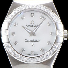 홍콩명품 [오메가] 남성용 여성 컬렉션 컨스틀레이션 123.15.27.60.55.003 오메가 코-액시얼 27MM 다이아몬드 세팅 베젤 화이트 화이트 다이얼 쿼츠 무브먼트 OMG4124