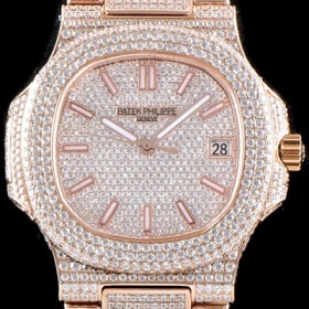 홍콩명품 [파텝필립] 남성용 파텍필립 5719/10G-010 노틸러스 스위프 세컨즈 18K 로즈골드 럭셔리한 최상급쥬얼 다이아몬드 풀 셋팅 브레이슬릿 Cal.324 S C 오토매틱 무브먼트 PAT0100
