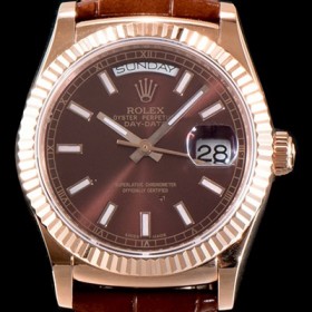 Rolex Oyster Perpetual Day Date 18K RoseGold Case Brown Sun Dust Dial Dial Chronometer Fluted Bezel Automatic Movement
