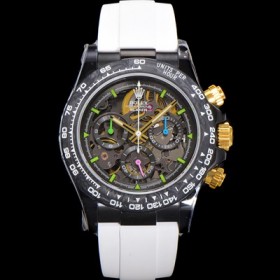 Rolex Men's Daytona Carbon bezel 40mm Chronograph Automatic Cal.4130 Movement Skeleton Dial