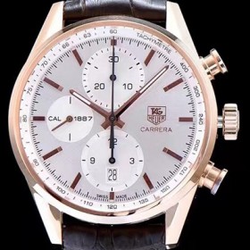 홍콩명품 [태그호이어] 남성용 까레라 칼리버 1887 크로노그래프 로즈골드 화이트 다이얼 오토매틱 무브먼트 TAG0200