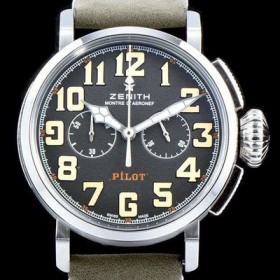 Zenith Pilot Heritage Type 20 Extra Special Ton-Up!!Chronograph Slate grey grained Dial Japan Quartz Movement