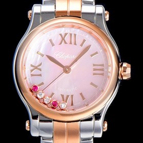 • 홍콩명품 [쇼파드]여성용 해피스포츠 미니 오토매틱 30미리 레이디스 18K로즈골드 투톤콤비 장식 자게다이얼 핑크 CHO77241