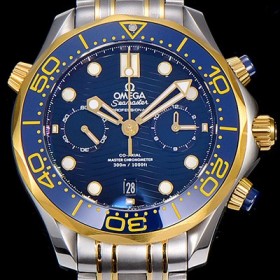 홍콩명품 [오메가]남성용 씨마스터 다이버 300M 마스터 크로노그래프 옐루골드 44mm 블루다이얼 OMG53678