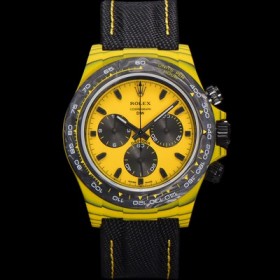 Rolex Men's Daytona DIW Forged Carbon Custom 40mm Chronograph Automatic Cal.4130 Movement Yellow Dial