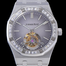 홍콩명품 [오데마피게] 남성용 로얄오크 Calibre 2924 투어빌론/수동기계식 41미리 다이아몬드 베젤 그레이다이얼 AUD74538