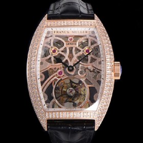 • 홍콩명품 [프랭크뮬러] 남성용 그랜드 컴플리케이션 8889 TG SQT BR 수동기계식 투어빌론 55mm 보석/다이아 셋팅 금장시계 가죽시계 스켈래톤 다이얼 fra48923