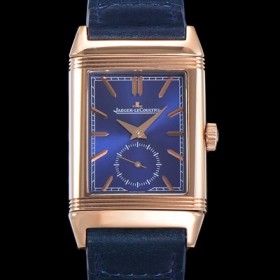 Jaeger LeCoultre Reverso Classic Large Duoface Mens Automatic LoseGold Case Watch Blue Dial