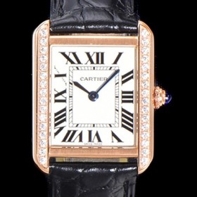 홍콩명품 [까르띠에] 여성용 탱크 WJTA0011 로마 인덱스 31mm 화이트 다이얼 커플용 로즈골드 악어가죽 쿼츠 무브먼트 CAR01574