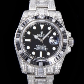 홍콩명품 [로렉스] 남성용 서브마리너 풀 다이아몬드 셋팅 오토매틱 Cal.3135 무브 40mm 블랙다이얼 rol5113
