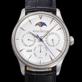 Jager-LeCoultre Master Ultra Thin Perpetual Calendar Automatic MC868 Type 39mm Mens Diamond Bezel Display White Dial