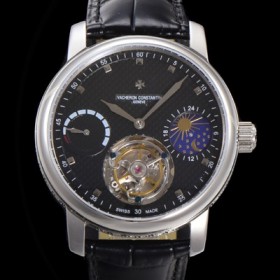 • 홍콩명품 [바쉐런콘스탄틴] 남성용 트레디셔널 투어빌론 오토매틱 문페이즈 44mm 가죽줄 블랙다이얼 vac05214