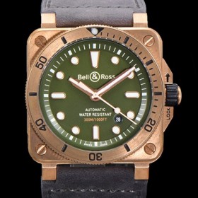 • 홍콩명품 [벨앤로즈] 남성용 BR03-92 다이버 브론즈 소재 오토매틱 9015 타입 42mm 가죽줄 그린 다이얼 bel4091