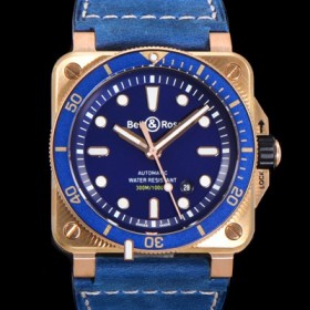 홍콩명품 [벨앤로즈] 남성용 BR03-92 다이버 브론즈 소재 세라믹 베젤 오토매틱 9015 타입 42mm 가죽줄 블루 다이얼 bel4096