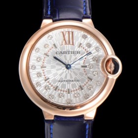 Cartier Men's New Ballon Bleu Crocodile leather band White Dial 36mm Automatic Movement
