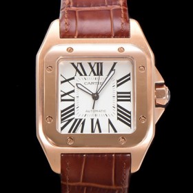 홍콩명품 [까르띠에] 산토스 100 XL 오토매틱 ETA2824-2 타입 18k 로즈골드 남성용 51mm 가죽줄 화이트다이얼 car69313