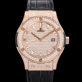 Hublet Men's Classic Fusion Diamond Setting Cubic/Gem Dial 18K Rose Gold 42mm Automatic 2892 Type Leather/Urethane Mix Band