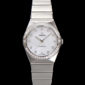 홍콩명품 [오메가] 여성용 컨스틀레이션 131.15.28.60.55.001 다이아몬드 세팅 베젤 28mm 쿼츠 무브먼트 화이트 자개 다이얼 omg0145
