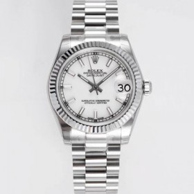 Rolex Women's Datejust Fluted 31mm Oyster Automatic Type 2236 White Dial