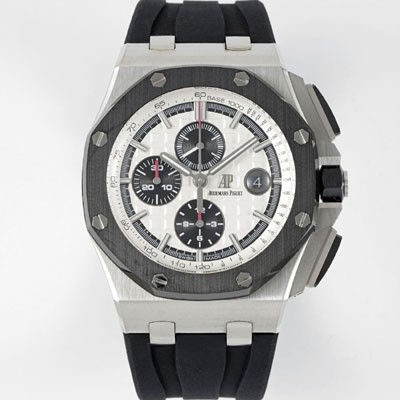 홍콩명품 [오데마피게] 남성용 NEW MOVT UP!! 로얄오크 오프쇼어 26400SO.OO.A002CA.01 블랙 세라믹 베젤 크로노그래프 화이트 와플 다이얼 오토매틱 무브먼트 AUD0203시계 부분명칭