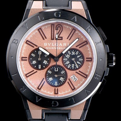 • 홍콩명품 [불가리] 남성용 신상품 업데이트!! 디아고노 102428 DG42BSMCVDCH 크로노그래프 마그네슘 PVD 핑크 다이얼 쿼츠 무브먼트 BVL4250