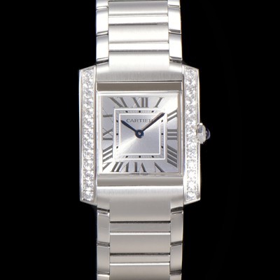 Cartier Men's New UP! Tank "Française Watch!!" Diamond M Model Silver Dial Swiss Quartz Movement