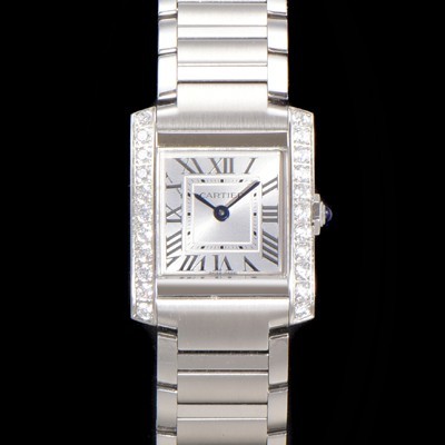 Cartier Women's New UP! Tank "Française Watch!!" Diamond S Model Silver Dial Swiss Quartz Movement