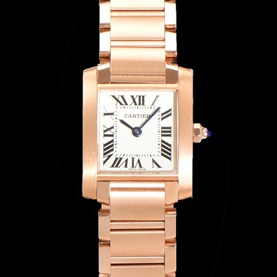 Cartier Women's Tank "Française Watch!!" S model, rose gold steel silver finish grain dial Swiss quartz movement