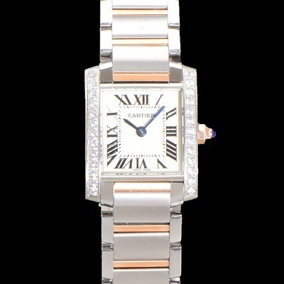Cartier Women's Tank "Française Watch!!" Diamond S model, rose gold steel silver finish grained dial Swiss quartz movement