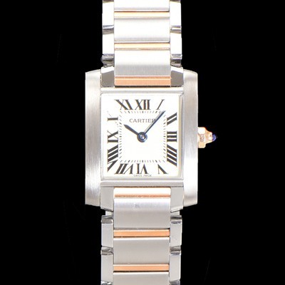 Cartier Women's Tank "Française Watch!!" S model, rose gold steel silver finish grain dial Swiss quartz movement