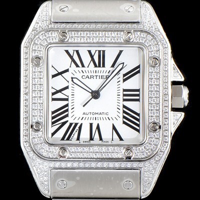 Cartier Santos 100 Large Model Men's Best UP! Medium-Diamond Silvered Opaline Dial Automatic Movement