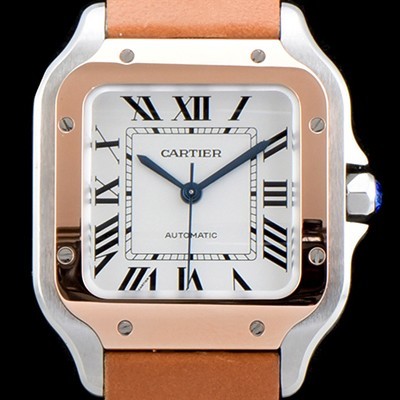 • 홍콩명품 [까르띠에] 남성용 산토스 드 까르띠 W2SA0007 "18K 로즈골드 베젤" 미듐 모델 정품 동일 사이즈 실버 마감 오팔린 다이얼 오토매틱 무브먼트 CAR4000
