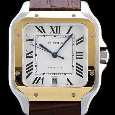 Cartier Santos Men's Best UP! Large Model 18K YellowGold Bezel Smartlink Silvered Opaline Dial Automatic Movement