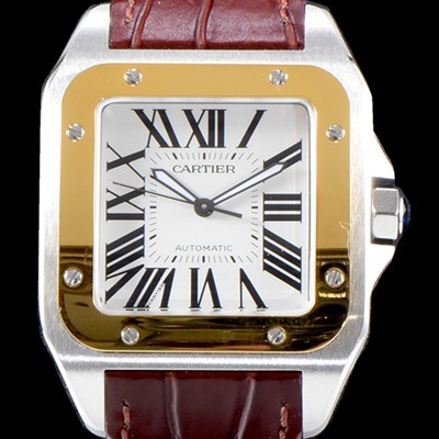 Cartier Santos 100 Men's Best UP! Large 18K YellowGold Combi White Dial ETA 2892-2 Automatic Movement