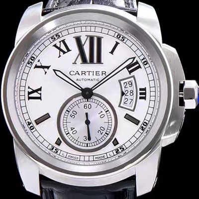 • 홍콩명품 [까르띠에] 남성용 칼리브드 까르띠에 화이트 다이얼 블랙 레더 스트랩 오토매틱 무브먼트 CAR0018