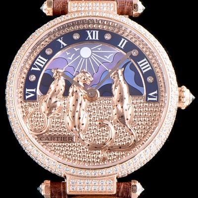 Cartier Reves De Pantheres 18k Rose Gold Case Jewelry Diamond Ladies Swiss ETA Quartz Movement