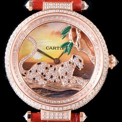 홍콩명품 [까르띠에] 남성용 팬더 오 끌레르 드 륀 드 까르띠에 HPI00712 18K 로즈골드 하이 쥬얼 세팅 픽첼 다이얼 스위스 쿼츠 무브먼 CAR0011 > 까르띠에 홍콩명품