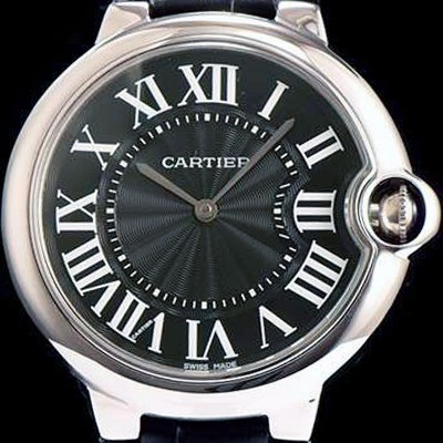 Cartier Ballon Bleu Black Dial on Black Leather Strap