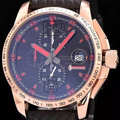 • 홍콩명품 [쇼파드] 남성용 클레식 레이싱 밀레 밀레밀리아 1000 모델 크로노그래프 18k 로즈골드 블랙 다이얼 일본산 쿼츠 무브먼 CHO0450