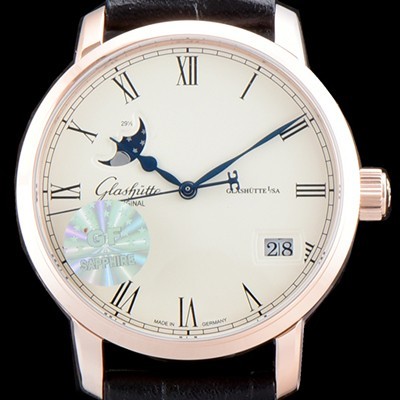 홍콩명품 [글라슈테 오리지날] 남성용 클래식 에그쉴 다이얼 UP!!세나토 100-04-32-15-50 "엑설런스 파노라마 데이트&문페이즈" 고급스러운 18K 로즈골드 스틸 에그쉘 다이얼 오토매틱 무브먼트 GLA4210 요약정보 및 구매