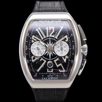 Franck Muller Men's Vanguard Automatic Chronograph Type 7750 44mm Leather Strap Black Dial
