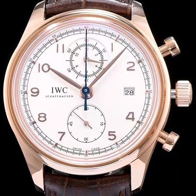 IWC Portuguese Kaliber Chronograph Classic 18k Rose Gold White Dial Automatic Movement